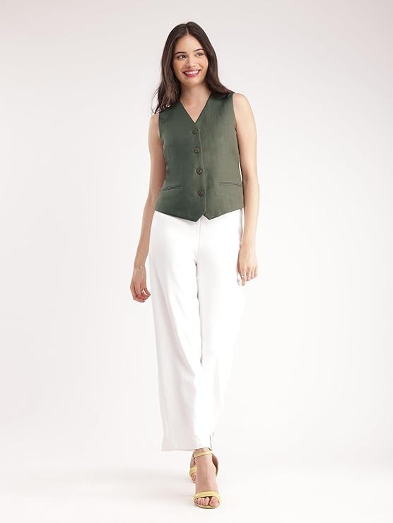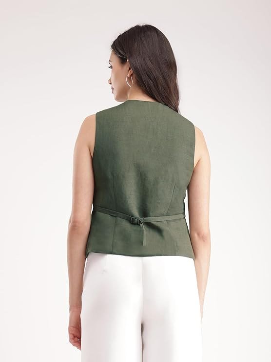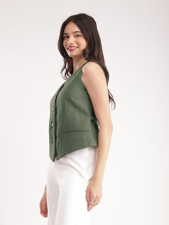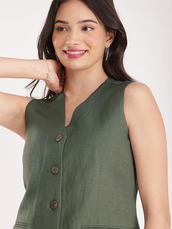 FableStreet Linen Waistcoat - Olive