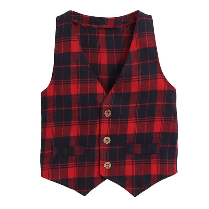 Hopscotch Baby Boys Cotton Checkered Regular Fit Waistcoat Shirt And Pant Set In Multi Color For Ages 18-24 Months